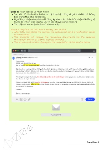After UEH completes the service, the system will send a notification email