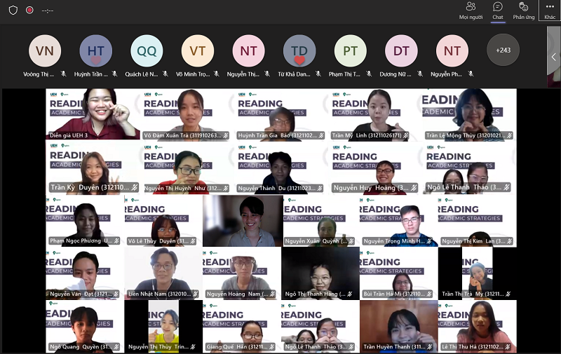Với mục tiêu giúp người học vượt qua những rào cản kể trên và cải thiện kỹ năng đọc trong bối cảnh học thuật, sáng ngày 17/06/2022, Phòng Chăm sóc và hỗ trợ người học (DSA) phối hợp cùng Khoa Ngoại ngữ và thành công tổ chức tọa đàm “Academic Reading Strategies” – “Xây dựng chiến lược đọc hiểu học thuật” trên nền tảng trực tuyến Microsoft Teams. Chương trình đã giúp người học thay đổi suy nghĩ về việc đọc và các chiến lược ứng dụng, cải thiện kỹ năng đọc và tăng tốc trình độ Tiếng Anh của mình.
