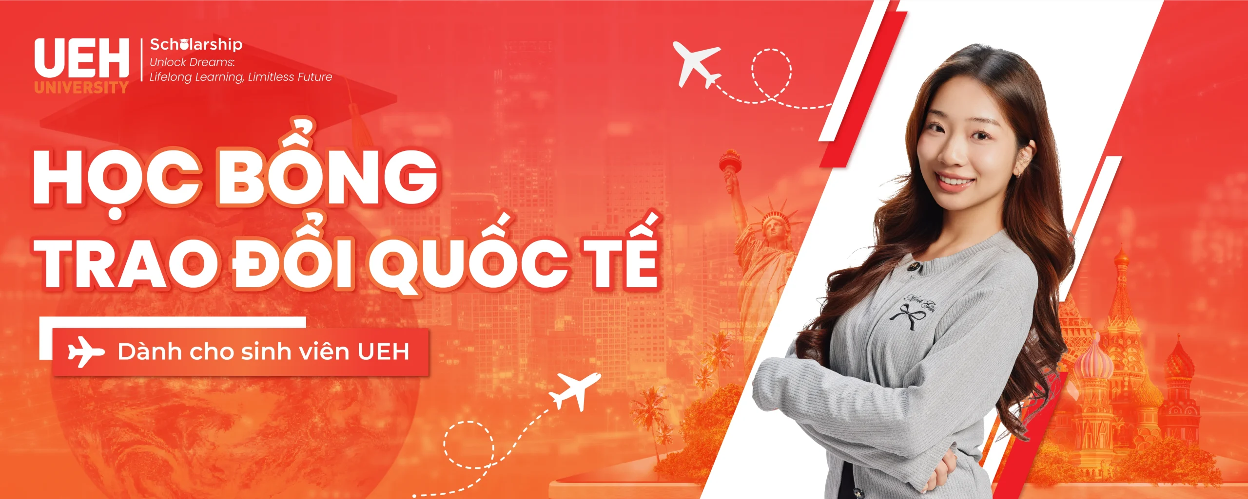 Cấp 100 suất sinh hoạt phí/năm cho sinh viên UEH tham gia trao đổi theo số tháng của chương trình trao đổi.